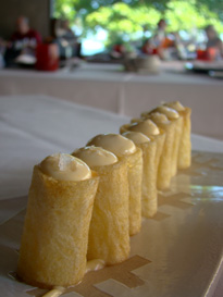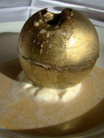 Para encerrar, turrón gelado com amêndoas, simples e bom.  E a esfera de chocolate com café e laranja, que era divertida e até gostosa, mas seria melhor se o molho fosse mais espesso e com sabor de café mais pronunciado.